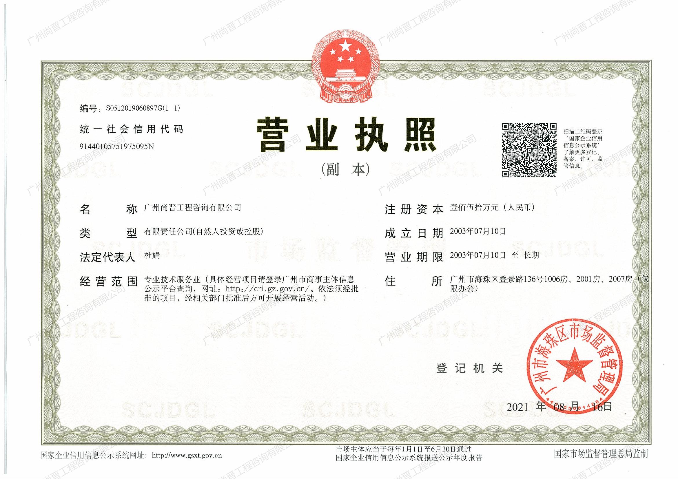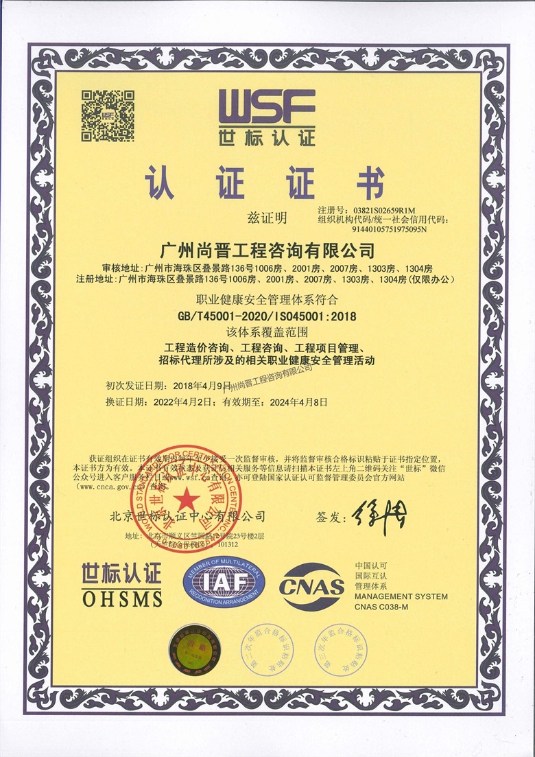 廣州尚晉工程咨詢有限公司(以下簡稱“尚晉咨詢“) 。具有建設部頒發的甲級工程造價咨詢資質、國家發展改革要頒發的工程項目管理資格證及廣東省工程建設招標代理資信A,是廣東省首批搭建大數據咨詢平臺進行全過程咨詢管控模式的公司之一,擔任廣東省工程造價協會理事單位、廣州市造價協會理事單位、廣東省建筑業協會理事單位等要職。     廣州尚晉工程...